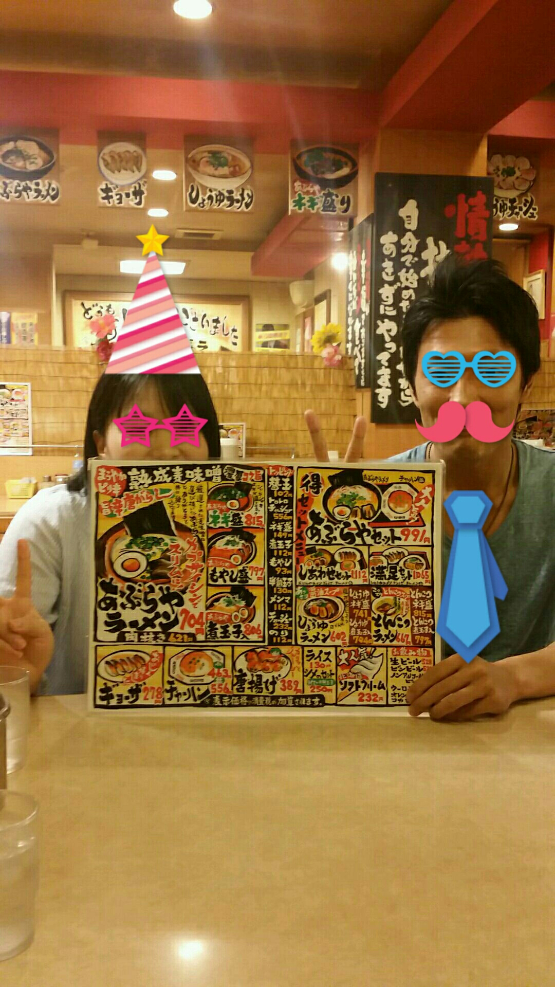 店内のメニューを持って記念撮影♪